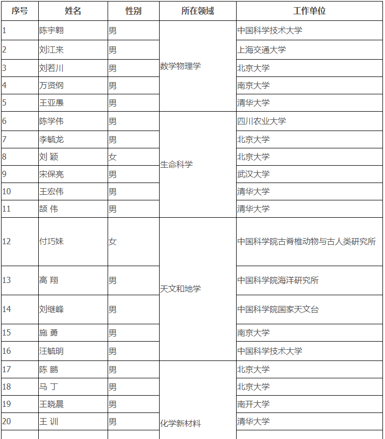 根據名單我們可發現,此次獲獎者絕大多數來自17所高校,如北京大學、清華大學、上海交通大學、浙江大學、中科大、南京大學、武漢大學、華中科技大學、東南大學、廈門大學、西南交通大學等;9名獲獎者來自相關研究所,還有一名來自中國石油化工股份有限公司。